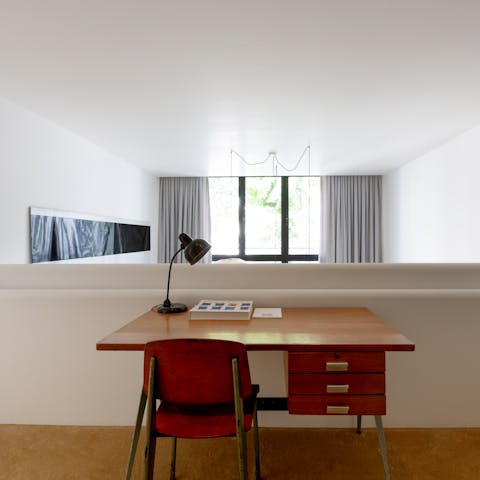 Boasting art deco details and a split-level layout, this former artist's atelier is prime for a Parisian getaway. Though the living space is slightly small, the sky-high ceilings and large French windows with views of the courtyard provide a sense of openness. Your host has an eye for detail, as evidenced by the carefully curated art and designer furnishings. There's a compact kitchen, plus a desk on the mezzanine that's ideal for remote working. With two en-suite bathrooms, it's convenient for groups, too. To top it all off, the location is excellent. You'll be in the heart of Saint-Germain-des-Prés, on an iconic street just moments from restaurants, shops, the Seine, and Notre Dame.