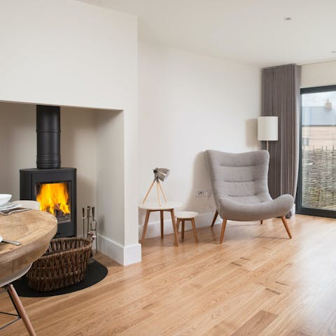 Cosy up inside around the wood-burning fireplace on chilly evenings