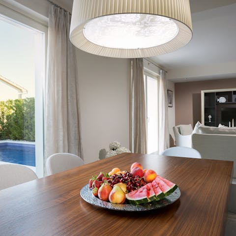 This modern villa sits in an elegant seaside resort, offering several charming features to go with its comfortable and practical design. You might be tempted to spend your entire stay out in the Adriatic sunshine – after all, you'll have access to a private pool, sunbeds, a dining table, and even a covered outdoor kitchen and barbecue for preparing alfresco cuisine. There's plenty to appreciate inside too, from a freestanding bathtub to another well equipped kitchen and dining area. You'll be a short walk from the resort's restaurant and private beach, while the coastal city of Poreč is a twenty-five-minute drive away and makes for a perfect day trip.