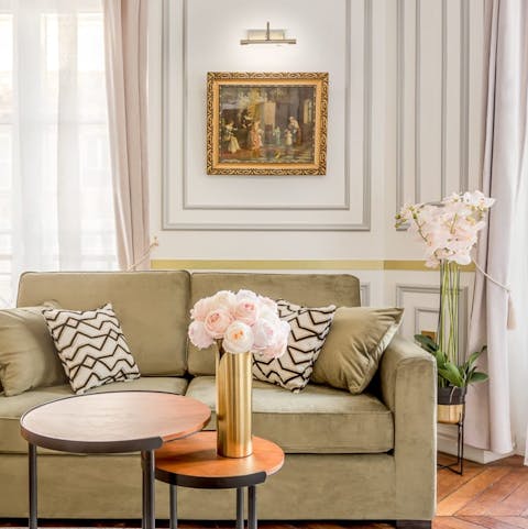 This small but pretty-as-a-picture apartment will help you feel right at home in Paris. The building was completed in 1860 and there are plenty of reminders of its history, from the high ceilings and parquet floors to the ornately carved fireplace and tall windows. That's not to say it's without modern comforts though – you'll love the sleek kitchen, luxurious marble bathrooms and workspace where you can catch up on emails while working remotely. Our favourite spot is the balcony, where you can sit and enjoy croissants with coffee for breakfast while watching the city come to life below. Down on the street level, you'll find many of Paris' top attractions are right on your doorstep. The Louvre is just a five-minute stroll away, while a ten-minute walk will take you to the Notre Dame. There are plenty of brasseries and jazz bars to discover nearby and, thanks to the excellent public transport links, you can visit other parts of the city with ease.