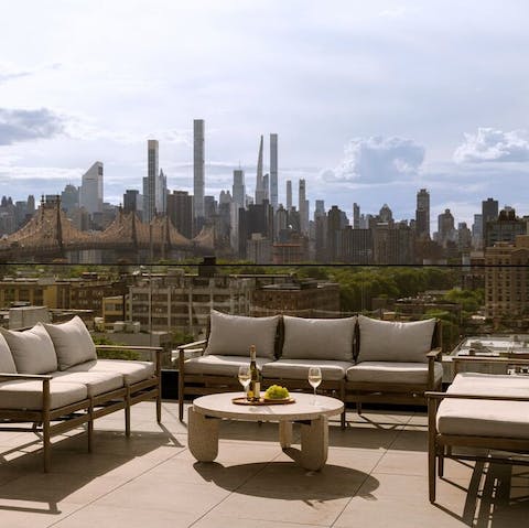 Located in New York's famous Long Island City – with spectacular skyline views over Manhattan – this sleek studio apartment suite welcomes you to relax and experience the city away from the hustle and bustle. While there's no kitchen inside your home, you'll find a mini fridge and a coffee machine – perfect for enjoying lazy mornings in bed over a good book when you're not too busy setting yourself to work at the dedicated desk space. Head up to the communal roof terrace for stunning views over the East River. With comfortable lounge chairs and dining areas, it's the perfect way to bookend a lovely day in New York. And, when you're ready to head out, you'll find yourself just a short walk from the subway station, instantly connecting you to the entire city. Locally, Queensbridge Park is just down the street, with more impressive views of Manhattan, while fantastic eateries and coffee shops will keep you well-fuelled for exciting days of sightseeing in and around the Big Apple.