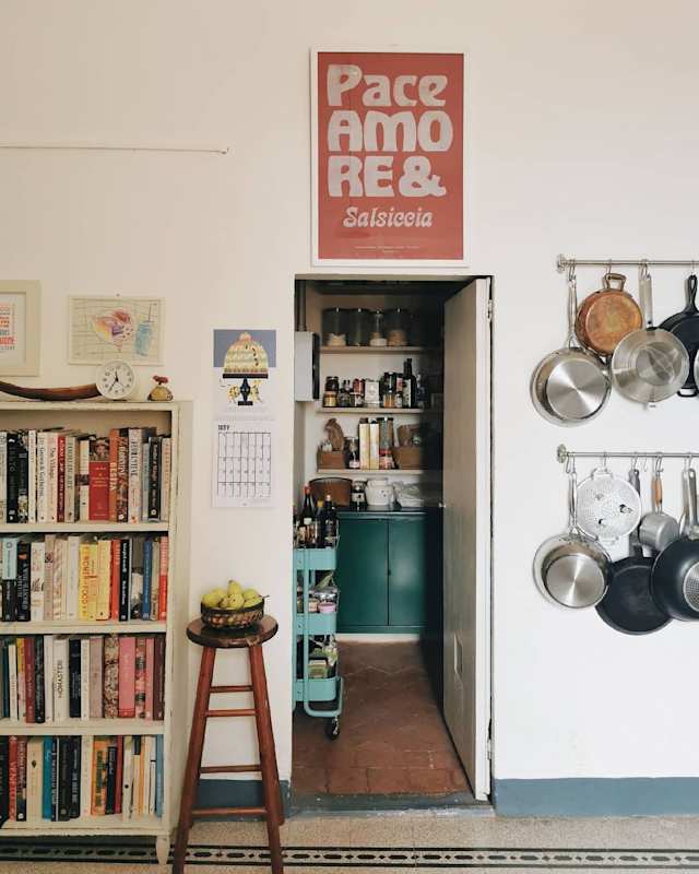 The kitchen table is my favourite item. It is a heavy marble table that I found buried under a mountain of books and dust in my mother-in-law’s attic. I knew there was a dining table in there but I had never seen it until I ventured in there one day and started excavating to get it out! Once it was out, I realised it had a beautiful marble table and wooden legs, a classic Tuscan table, sturdy and reliable. I loved it instantly. My mother-in-law then told me that it had belonged to her grandfather Angiolino and that he had had the table made from a piece of marble from his old alimentari (a food shop in town) that was destroyed in World War Two. He had a carpenter make the legs and turn it into a table, and this was the table my mother-in-law grew up around until my husband Marco was a baby. It had been sitting in the attic ever since then — and now I want to give it a new life, in our new home where I hope it will become an heirloom for my girls too.