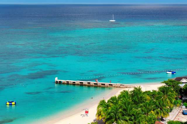 An aerial view of a sandy beach at Montego Bay, Jamaica